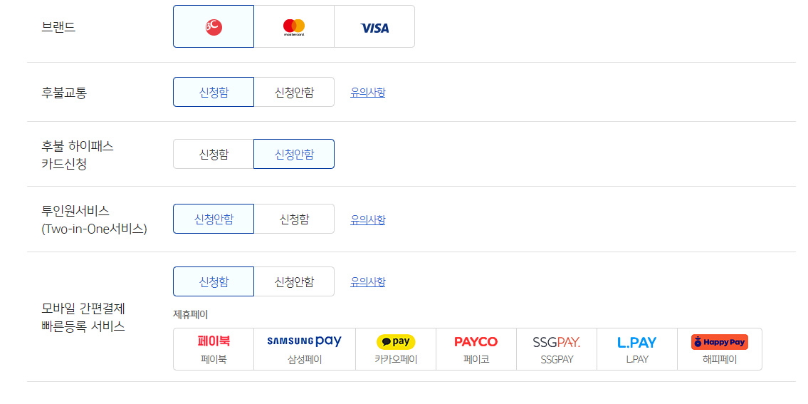 신청 시 브랜드 교통 카드등 본인 선택이 가능하다