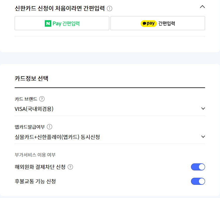 결제수단 선택 화면에서 '신한 MR.Life카드'를 선택하여 결제 시 할인 적용