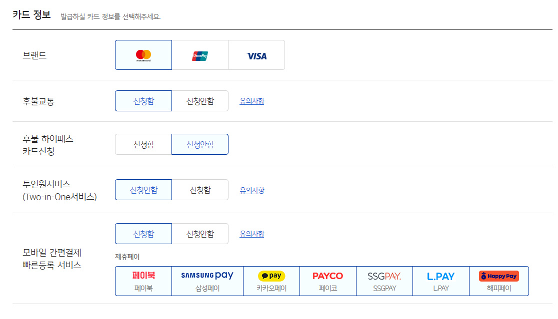 Two-in-One 결제 서비스(체크매출) 이용 시 청구 할인은 적용되지 않으며